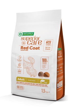Popolna hrana za odrasle pse z rdečo dlako majhnih in mini pasem brez žitaric z lososom.